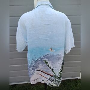 Tommy Bahama Rare L Paddle Board Island Hawaiian Linen Shirt Collar Button Down