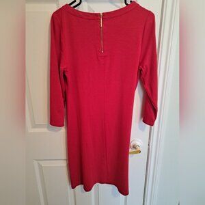 Stylish red dress with 3/4 sleeves. Perfect for any occasion.