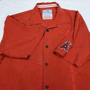 Tommy Bahama Red MLB Anaheim Angels Baseball Silk Button Up Shirt Men Medium
