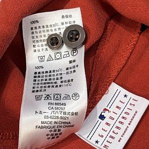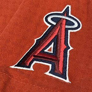 This is a really cool officially licensed baseball silk button up shirt from Tommy Bahama. It’s red and features the Anaheim Angels. It’s got an embroidered baseball player on the chest and team logo on the sleeve. 100% silk. This style currently sold out. Size is determined by tag so please also see measurements. Thanks!