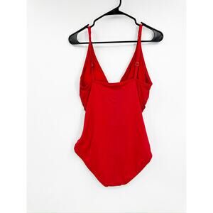 Tommy Bahama Red Plunge V-Neck Ruched Tummy Control One Piece Swimsuit Size 10