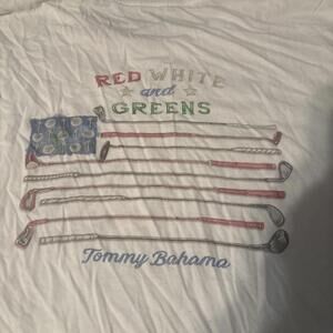 Tommy Bahama Red White And Greens Golf Themed White Tee Shirt Men’s Size Medium