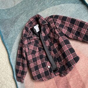 Classic plaid shacket with a red and black flannel pattern. Button closure, Ideal for casual outings and layering this fall . Great pre loved condition size 3T