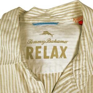 Tommy Bahama Relax 100% Linen Beige Khaki Stripe L/S Button Down Shirt Large