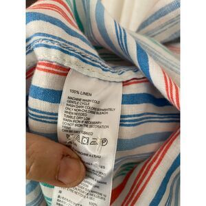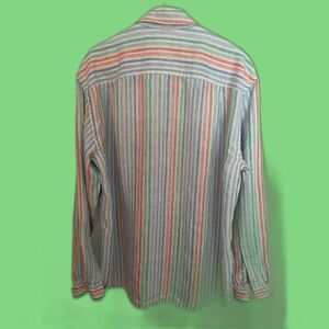Stay cool and stylish with this Tommy Bahama Relax long-sleeve shirt in a vibrant multicolor stripe on a white background. Made from breathable linen, this shirt is perfect for resort wear, summer events, and warm weather office wear. Features a button front, chest pocket, relaxed fir and curved hem. Excellent used condition, non-smoking home.