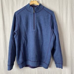 Tommy Bahama Relax 1/4 Zip Mens Preppy Reversible Sweater Size L Blue Purple