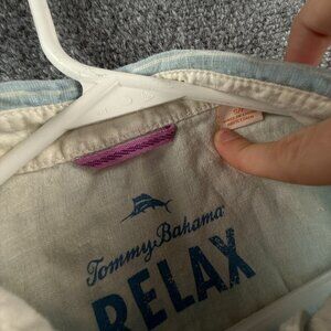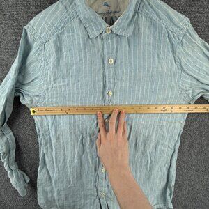 Tommy Bahama Relax All Linen Small Button Up Shirt Men Long Sleeve Blue Striped