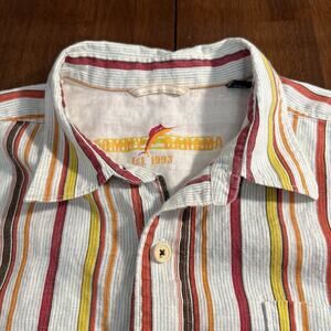 Tommy Bahama Relax Button Up 100% Linen Shirt Men's XL Striped White Red Yellow
