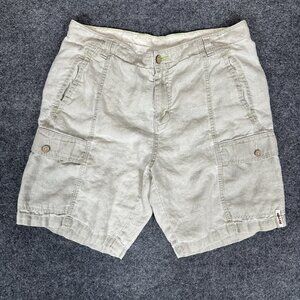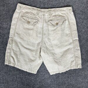 Tommy Bahama Relax Cargo Shorts Men 36 Beige 100% Linen Mid Rise Casual 9" Adult
