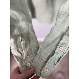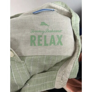 Tommy Bahama Relax Linen Green Stripe Long Sleeve Button Down Size XL Men’s