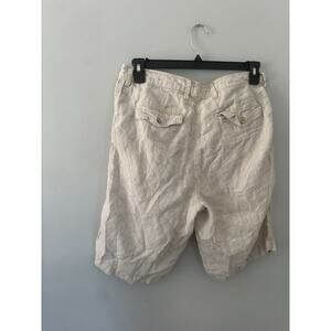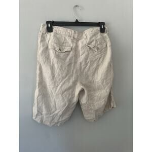 These Tommy Bahama Relax Linen Shorts in size 34 are perfect for a casual beach or vacation style. The beige color and striped pattern give a laid-back, resort-inspired look. Made with a comfortable linen and cotton blend fabric, these relaxed fit shorts feature a flat front design with a canvas texture. Lightweight and breathable, they are ideal for travel and outdoor activities, with added convenience of pockets for added functionality. Perfect for a day at the beach or by the pool, these Tommy Bahama shorts embody a relaxed and easy-going vibe.