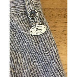 Tommy Bahama Relax Linen Shorts Mens Size 35 Gray Striped Flat Front