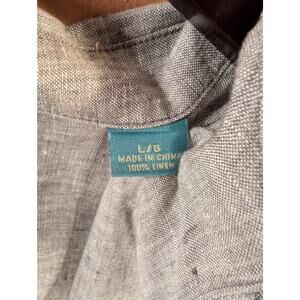 Elevate your wardrobe with this stylish Tommy Bahama Relax button-down shirt! Crafted from 100% linen, this size L shirt features a unique gray/brown color with a subtle metallic sheen.