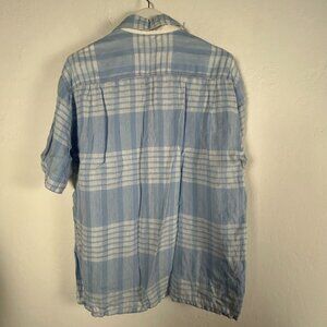 Tommy Bahama Mens Relax Blue Plaid Linen Short Sleeve Button-Up Shirt Size Large