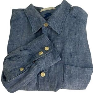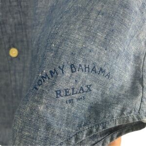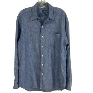 Tommy Bahama Relax Mens MEDIUM Linen Button Down Long Sleeve Blue Chambray Shirt