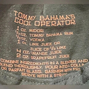 Tommy Bahama Relax, baseball hat. Tommy Bahama logo + Palm Tree on front. Silver tone metal adjustable strap in the back, with Tommy Bahama logo and sailfish on it. The interior of the hat has the Tommy Bahama Cool Operator drink recipe printed in it. Bendable bill. MSRP: $32. Brand new. Never worn. NWT.