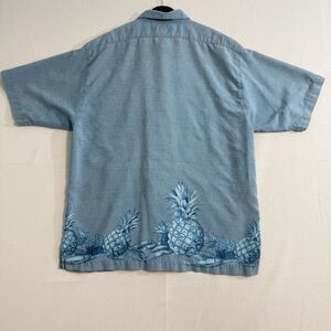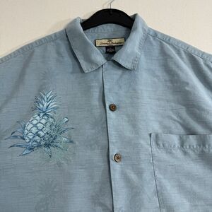 Tommy Bahama Relax Silk Shirt Mens Medium Teal Blue Short Sleeve Pineapple Print