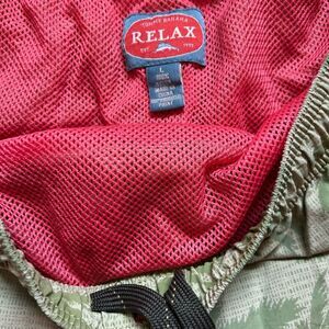 Tommy Bahama Relax Swim Trunks Green w/palm Trees, Sz Large, drawstring elastic