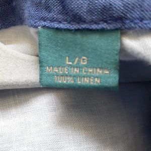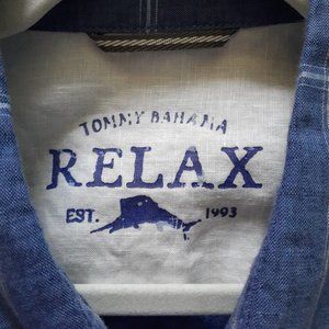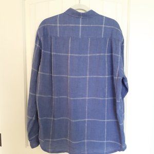 Very good pre-owned condition. Tommy Bahama Windowpane Check Long Sleeve Button Up Linen Shirt. Size Large. Color: blue with white windowpane. 100% linen. Machine wash.