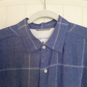 Tommy Bahama Relax Windowpane Check Long Sleeve Button Up Linen Blue Size L