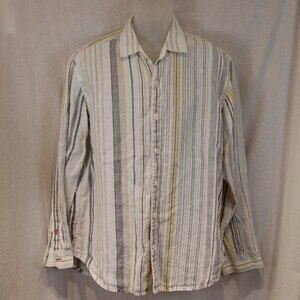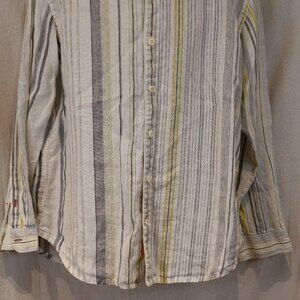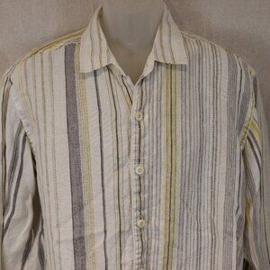 Tommy Bahama Relaxed Linen Shirt Large Yellow Gray Striped Button Down