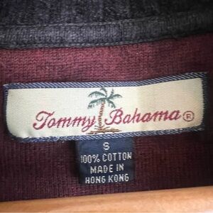 Experience the perfect blend of style and comfort with this Tommy Bahama zip-up sweater. Featuring a sleek black base with striking red accents, this sweater is designed for both casual outings and relaxed evenings. Its knit material ensures warmth and a cozy fit, making it an essential addition to your wardrobe.