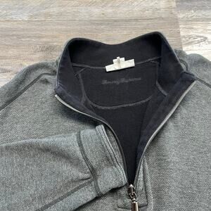 Tommy Bahama Reversible Black Gray Mens XL Quarter Zip Pullover Sweater EUC