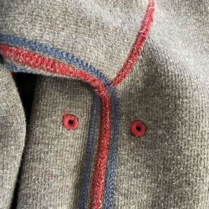 Men’s Tommy Bahama reversible quarter zip pull over sweater. Charcoal, gray on one side and burgundy on the other. Both sides have contrast stitching. Zipper pole is logod. Vent holes under the arms. Laying flat measures 27 inches sold her to him and 24 inches armpit to armpit. Size tags have been removed because it is a Reversible, but this is a size large. Please double check measurements to ensure the proper fit for you.