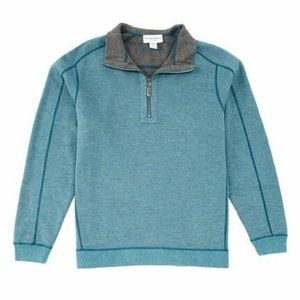 NEW WITH TAGS. From Tommy Bahama Big and Tall, this pullover features: Ribbed mock neckline with quarter-zip placket, Long sleeves with ribbed cuffs, Ribbed hem, Reversible, Yarn-dyed, Cotton/Lyocell slub, Machine wash. COLOR: Sea Mist and Heather