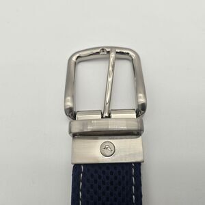Tommy Bahama men’s navy textured belt, size 2X (46–48). Features a man-made woven-style upper with genuine leather lining and trim. Polished reversible silver-tone buckle and durable construction. Ideal for smart-casual or resort wear. Excellent, Like-New condition, New without tags.