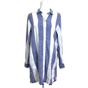 Tommy Bahama Rugby Beach Stripe Cover-Up Tunic Shirt Dress Linen Blue Size M