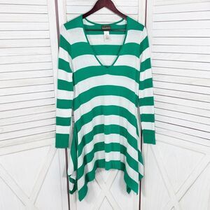 Tommy Bahama Rugby Stripe Knit Shark Bite Tunic Swim Cover Green White
