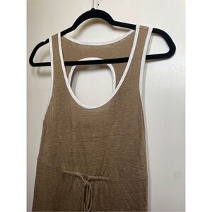 EUC Tommy Bahama 100% Linen Seneca Jersey Open Back Dress Neutral Khaki Coastal size S. Drawstring waist perfect for travel resorts beach swim cover summer!