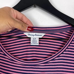 Tommy Bahama (S) Striped T-Shirt Dress Knee Length Blue Pink Stretchy