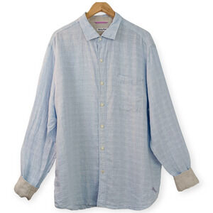 Tommy Bahama Ventana Plaid Linen Shirt SZ XL Light Sky