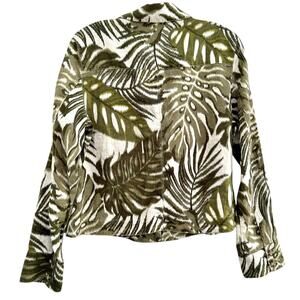 Breezy palms bring vacation-ready vibes to this lightweight 100% linen jacket that's perfect for packing on your next getaway.