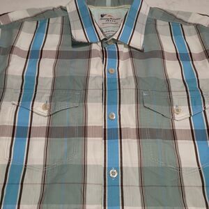 Get ready for any occasion with this stylish Tommy Bahama Sahara Sun Fade Plaid Shirt. This premium quality shirt features a collared neckline with a spread collar style and short sleeves. It comes with a button closure and features embroidered accents that add a touch of elegance to the design.