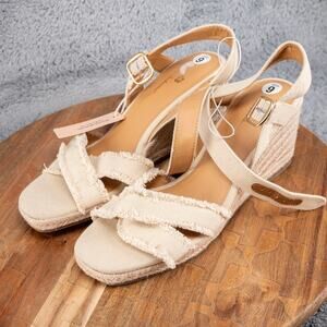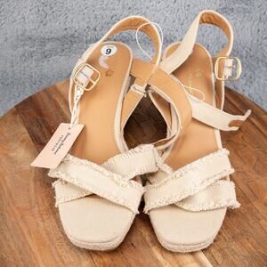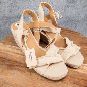 Tommy Bahama Sandals Womens 9 M Bethany Wedge Espadrille Cream Ankle Strap