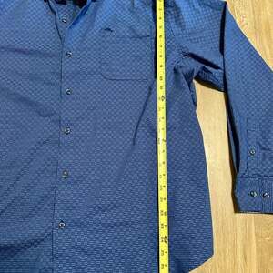 This Tommy Bahama Sarasota Stretch Ventura Isles IslandZone Woven Shirt in size XXL offers classic style and exceptional comfort. Crafted with IslandZone technology for moisture-wicking and quick-drying properties, this shirt features a stylish stripe pattern and stretch fabric for ease of movement. Perfect for casual outings or a relaxed vacation, it combines functionality with the signature Tommy Bahama aesthetic. The shirt is in excellent used condition with no noticeable flaws. Made in Cambodia.
