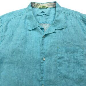 Tommy Bahama Sea Glass Linen Camp Shirt Mens XL Short Sleeve Hawaiian Green