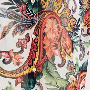 Tommy Bahama | Semi Sheer Paisley Button Down Tropical Floral Blouse Sz M