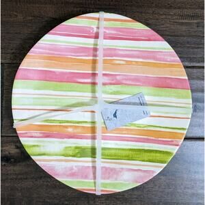 This Tommy Bahama set of 4 melamine 10.5" plates features a colorful summer print with a striped pattern, perfect for summer occasions like birthdays, housewarmings, and other celebrations. The round dinner plates are great for both teens and adults, adding a touch of beach and nautical theme to your table setting. Made of durable melamine material, this four-piece plate set is sure to elevate your dining experience with its vibrant and stylish design.