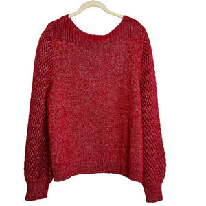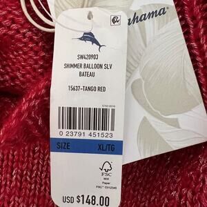 Tommy Bahama Women's Shimmer Balloon Sleeve Sweater XL Tango Red Wool Blend Boatneck