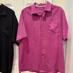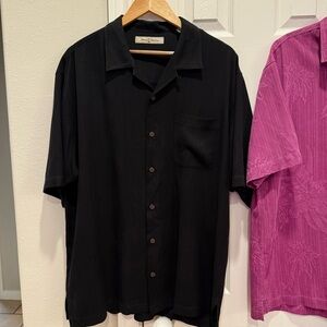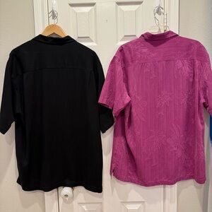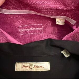 Tommy Bahama Shirt Black Purple 100% Silk Hawaiian Textured Men's Sz L Lot Of 2
