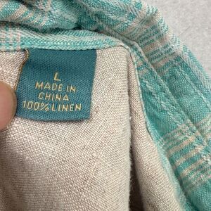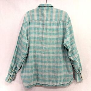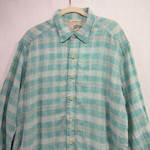 Tommy Bahama Shirt Men L Green Plaid 100% Linen Relaxed Fit Breathable Career
