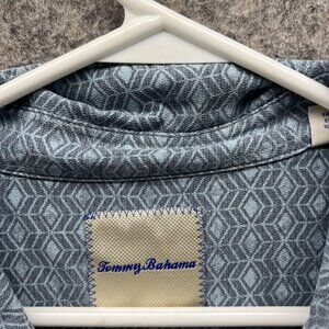 Tommy Bahama Shirt Men XXL Blue Casual Button Down Preppy Silk Geometric 2XL