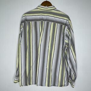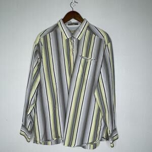 Tommy Bahama Shirt Mens 2XL Gray Yellow Striped Cotton Silk Blend Button Up Casual