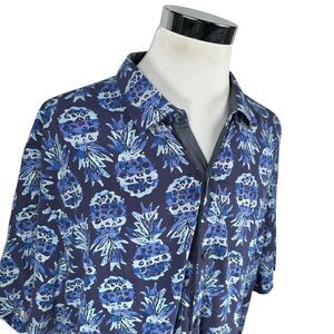 Tommy Bahama Shirt Mens 3XL XXXL Blue Pineapple Party Camp Silk Short Sleeve