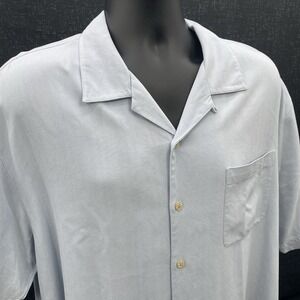 Tommy Bahama Shirt Men's L Blue 100% Silk Button Up Camp Casual Short Sleeve.