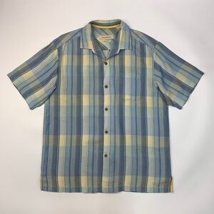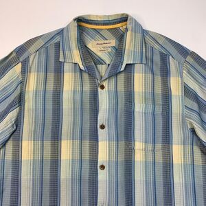 TOMMY BAHAMA SHIRT MENS L LARGE BLUE SILK STRIPED ORIGINAL FIT POCKET HAWAIIAN
